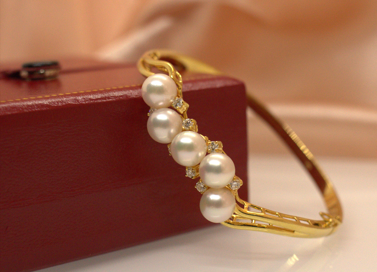 Armband i 18K Guld med Odlade Pärlor och Diamanter