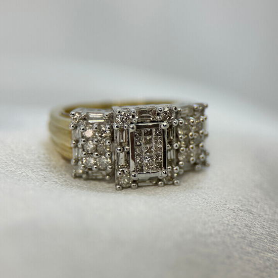 14K Diamond Ring with Heart Motifs