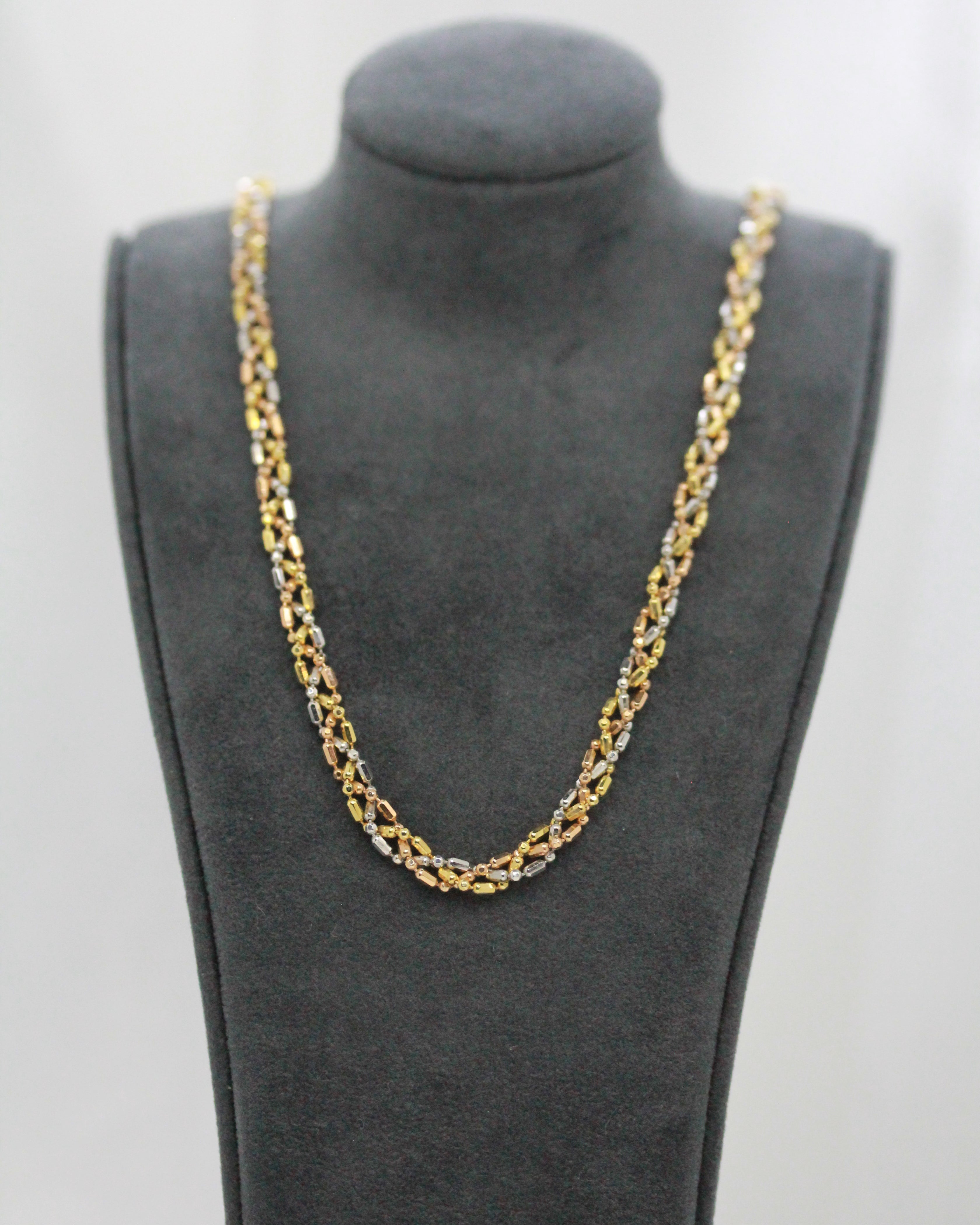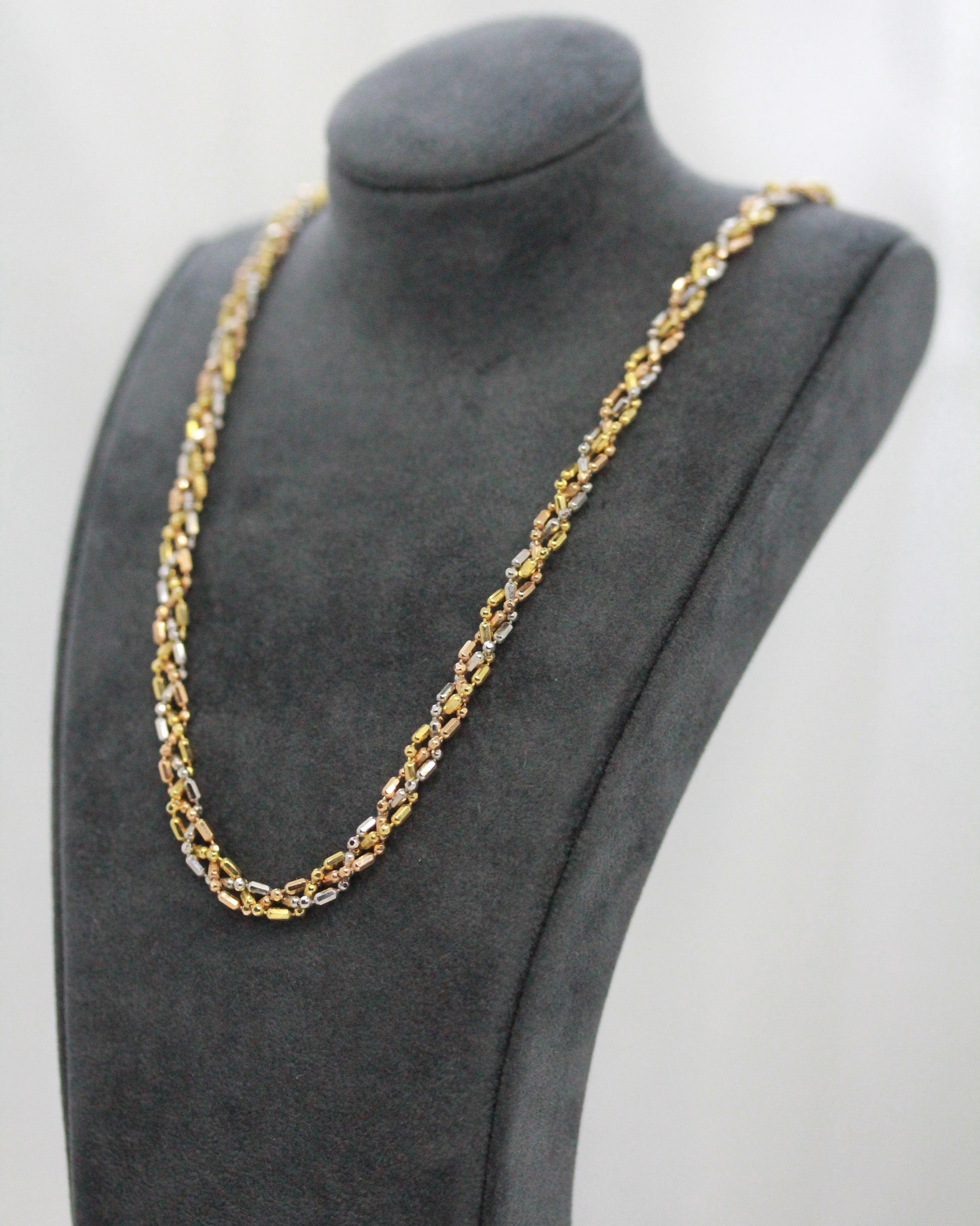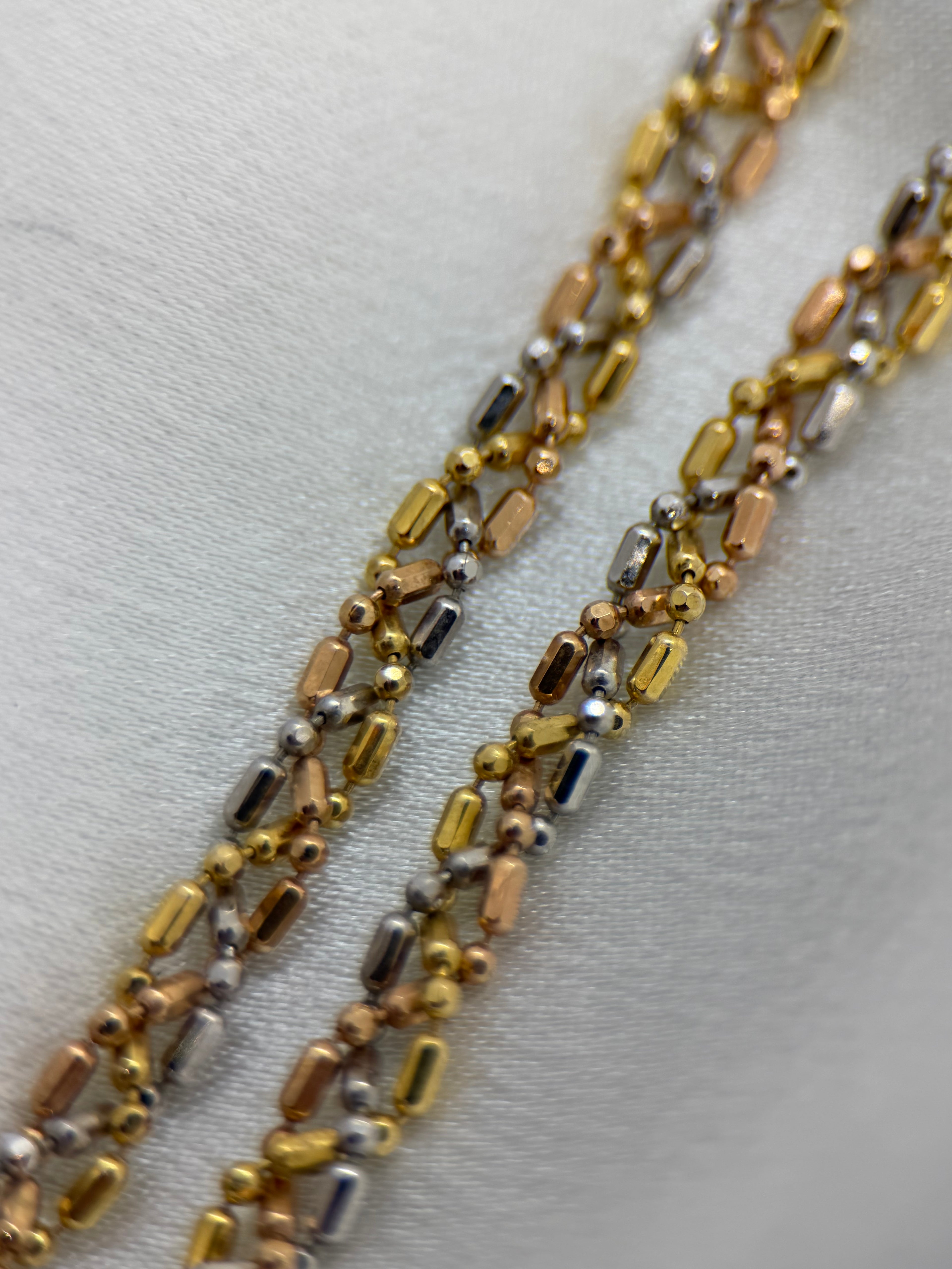 18K Tri-Coloured Gold Necklace – 14.2g, 43 cm