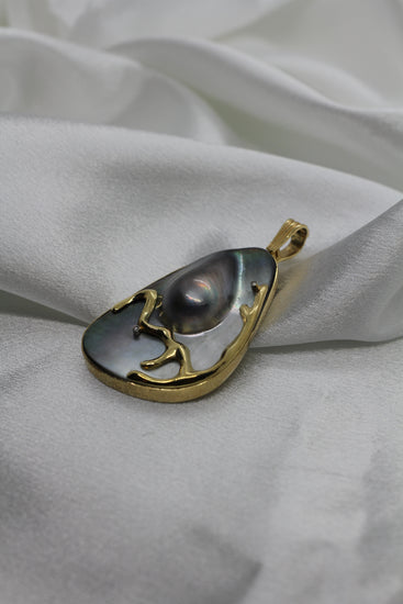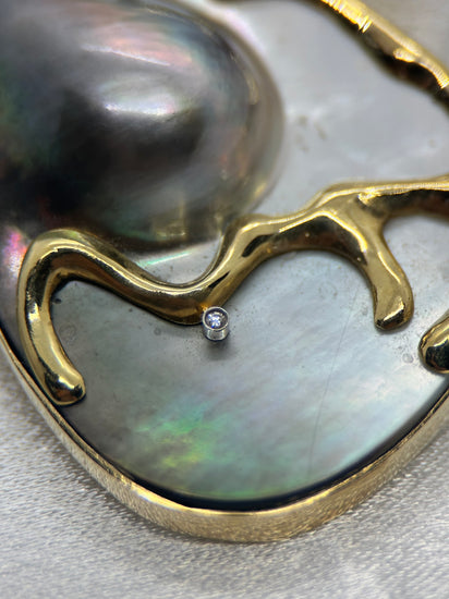 14K Gold Pendant with Blister Mother of Pearl and Diamonds