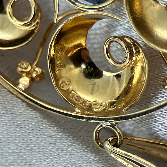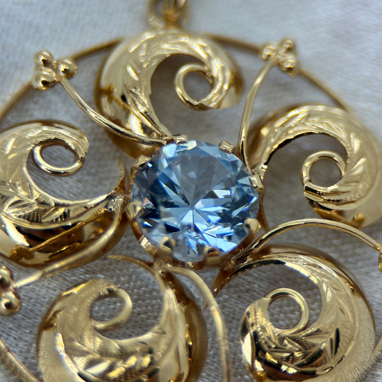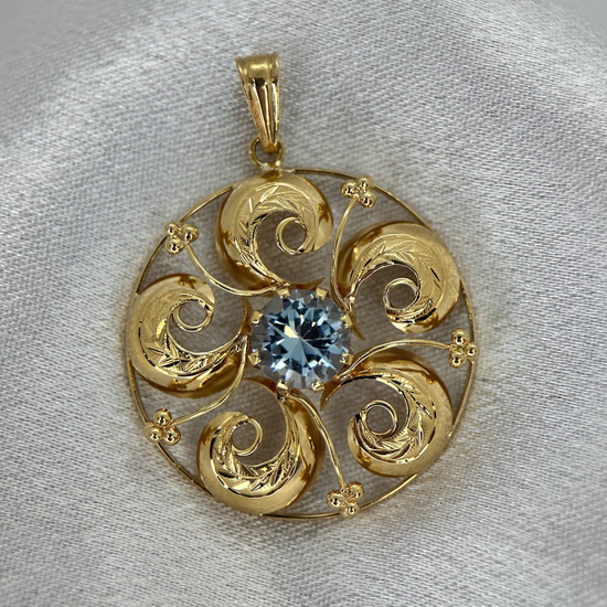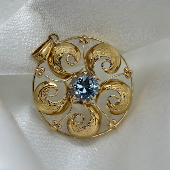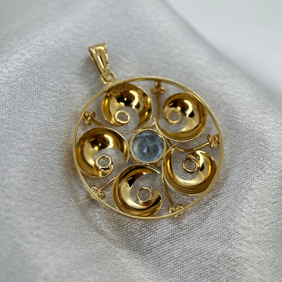 18K Hänge med Syntetisk Blå Sten - 1955