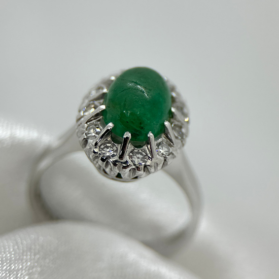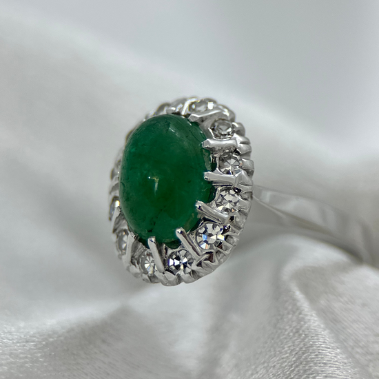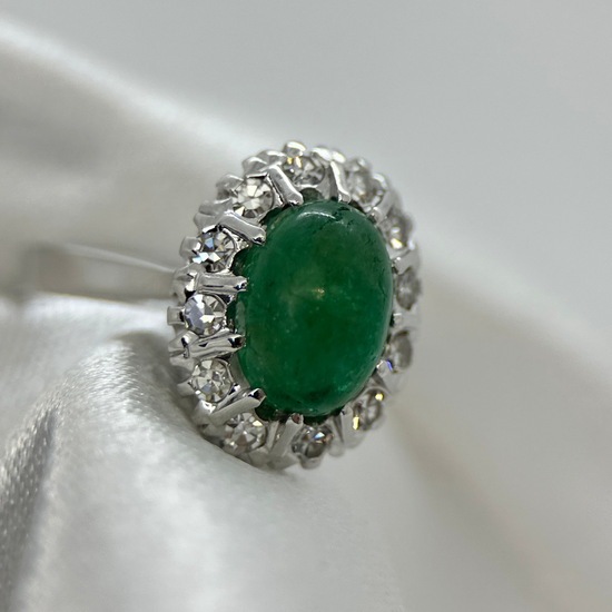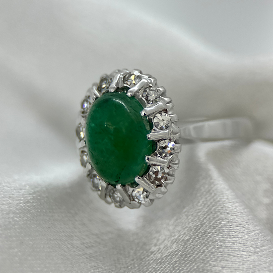 18K Smaragd och Diamantring 1976 - Storlek 54