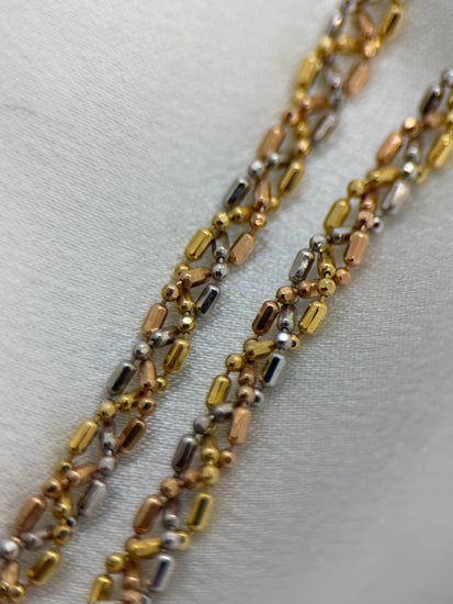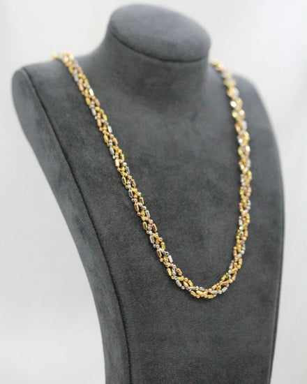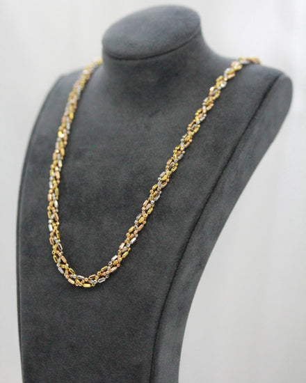 18K Trefärgat Guldhalsband – 14.2g, 43 cm