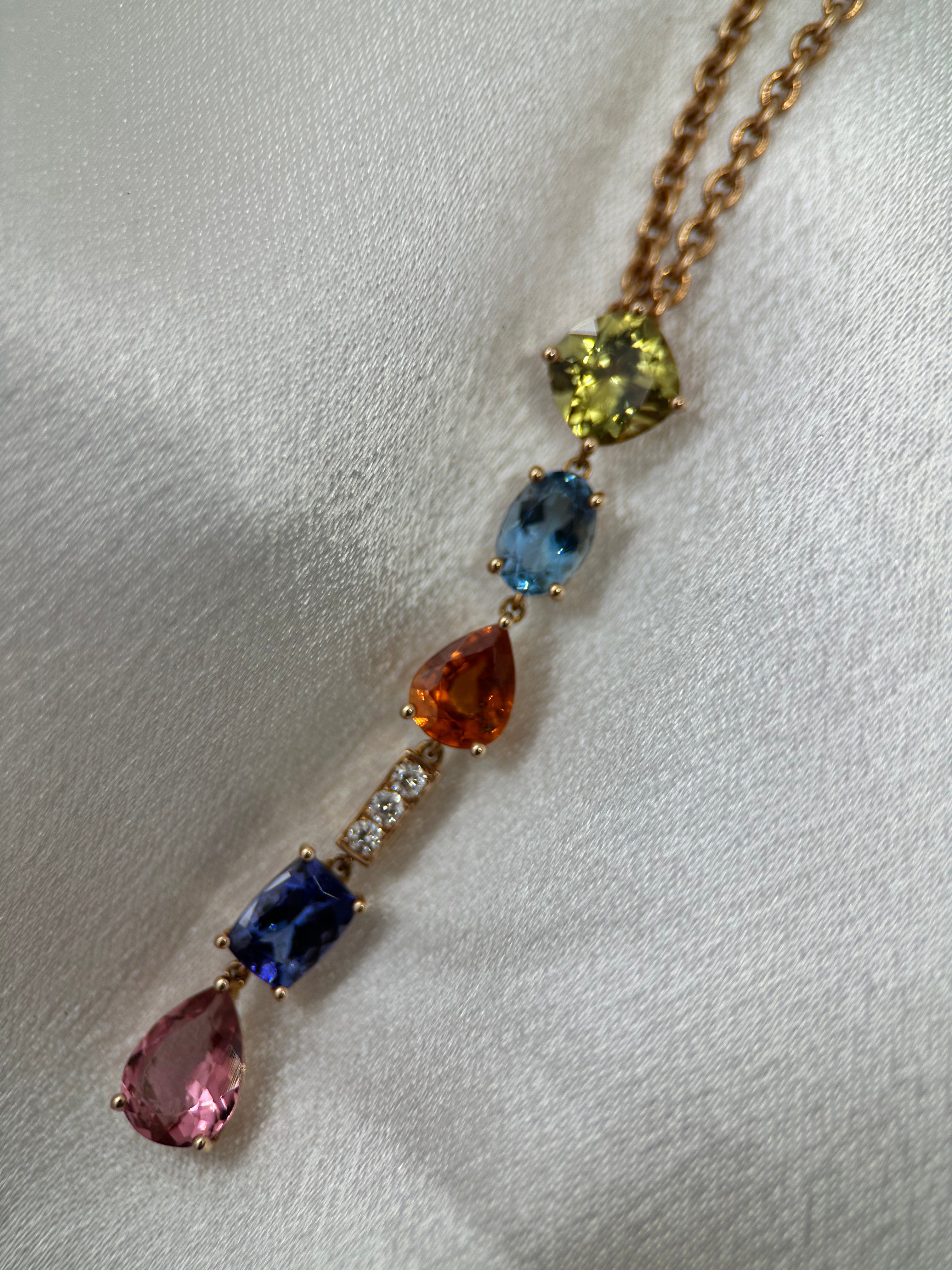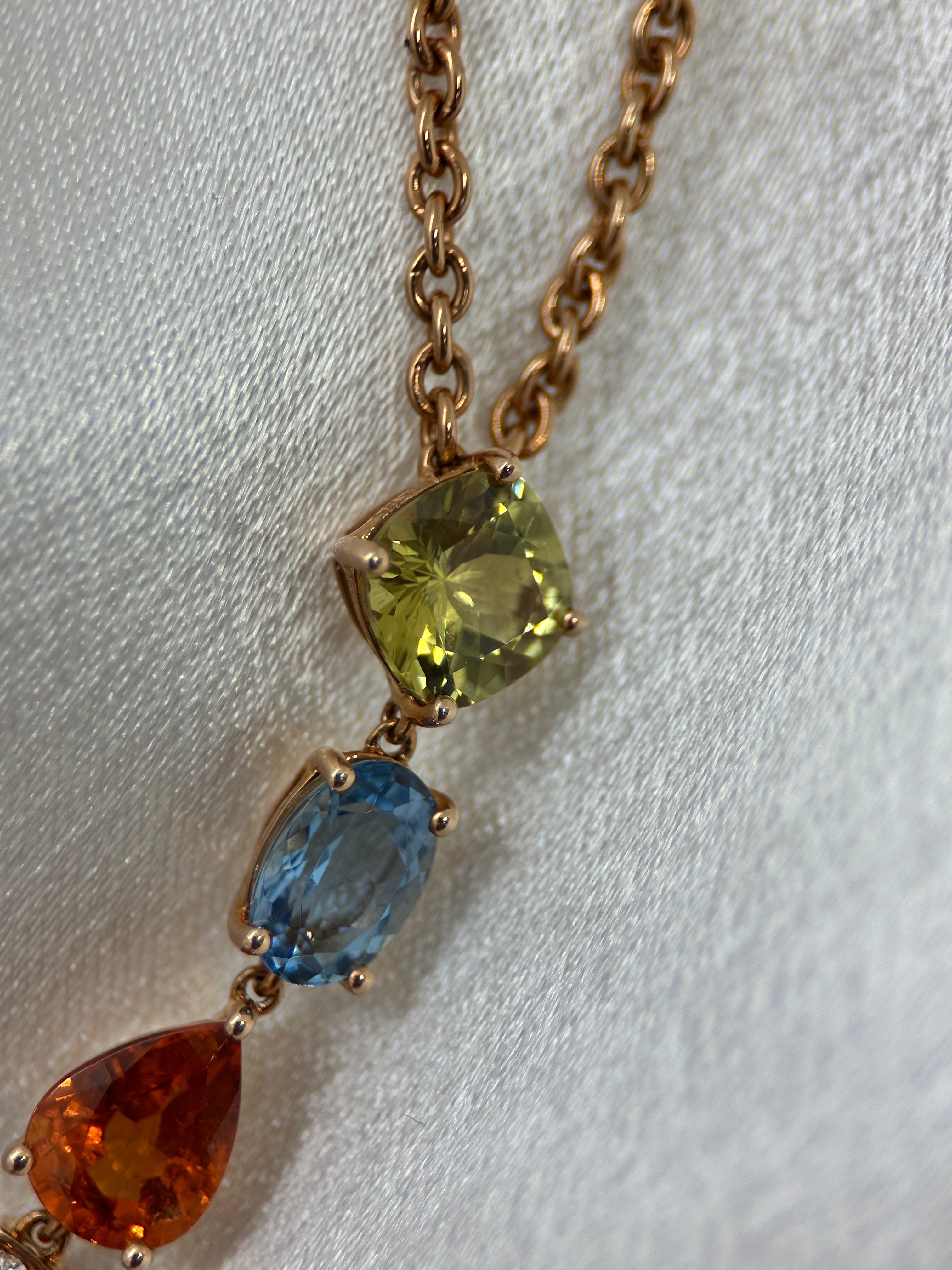 Hängsmyckeshalsband i 14K Roséguld med Ädelstenar & Diamanter